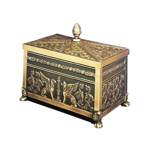 The Sarcophagus cremation urn is a cast bronze rectangular cube.