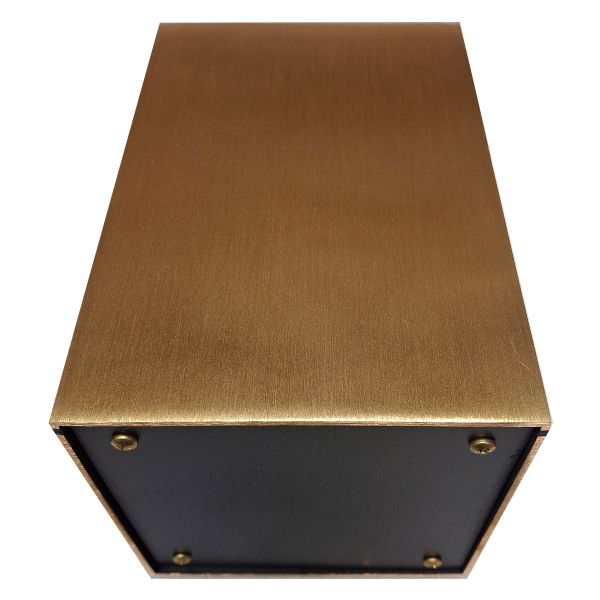 The Solitude Crucifix cremation urn is a rectangular wrought bronze cube. It features a Latin Crucifix appliqué.