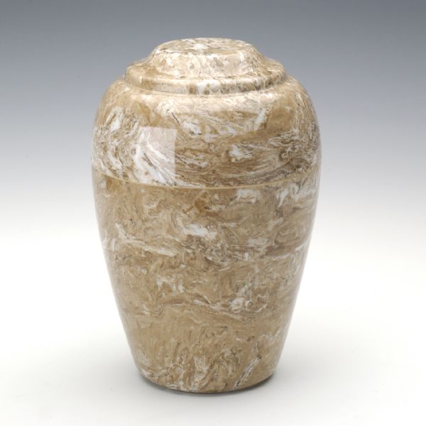 Cultured marble is a term used to describe a very strong material that simulates the appearance of genuine stone or marble. Cultured marble cremation urns are made combining modern plastics with natural materials, such as crushed stone. The resulting appearance is a rich and smooth marbleized texture, with a look and feel that simulates real, natural stone.