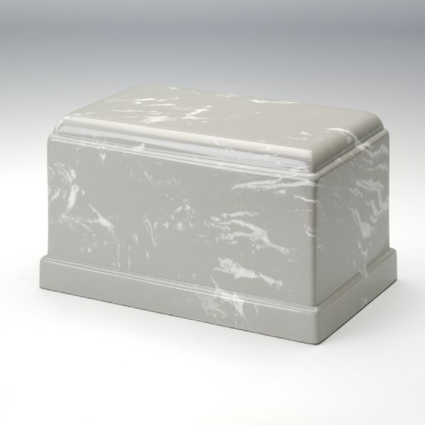 Cultured marble is a term used to describe a very strong material that simulates the appearance of genuine stone or marble. Cultured marble cremation urns are made combining modern plastics with natural materials, such as crushed stone. The resulting appearance is a rich and smooth marbleized texture, with a look and feel that simulates real, natural stone.