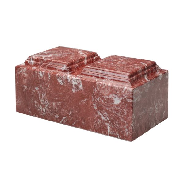 The Companion Rose cultured marble companion cremation urn is crafted in the shape of a rectangular cube. It has a double compartment that opens with a bottom-opening stopper. Since each urn is unique, please allow for slight variations in the pattern, texture and intensity of the cultured marble.