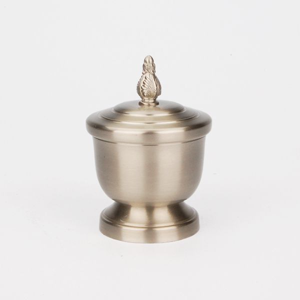 The Jefferson pewter token cremation urn is crafted in the shape of a classic style vase with a bottom-opening threaded stopper.