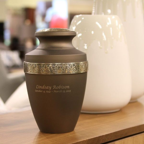 Brass urns can be kept at home, entombed in a cemetery columbarium niche or buried in an earth grave. Please note some cemetery regulations may require that this urn be placed inside of an urn vault prior to earth burial.