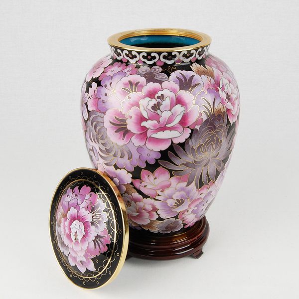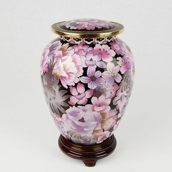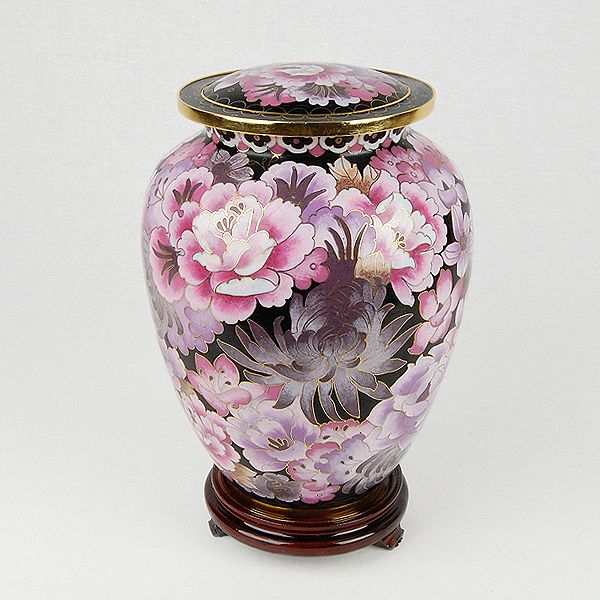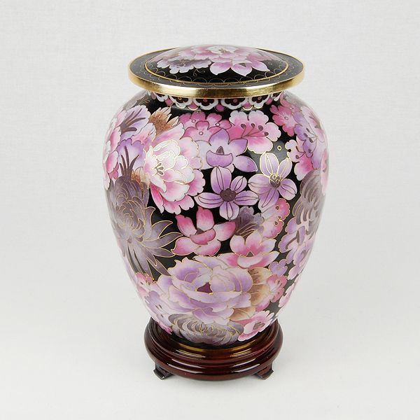 Cloisonné cremation urns are made from metal that have a decorative enamel finish. Cloisonné is an ancient, Near East metalworking technique used in the decorating of metal objects. The first recorded use of the cloisonné technique was in Ancient Egypt, but was also popular during the Roman and Byzantine Empires. The Chinese, however, made the cloisonné technique famous in the modern world, since the most elaborate and highly-valued cloisonné pieces are from the early Ming Dynasty.