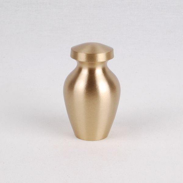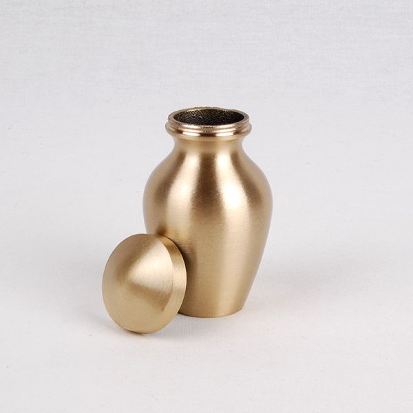 The Spartan II brass token cremation urn is crafted in the shape of a classic style vase with a gold satin finish. It has a threaded, top-opening lid.