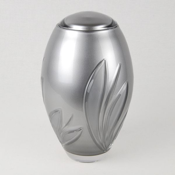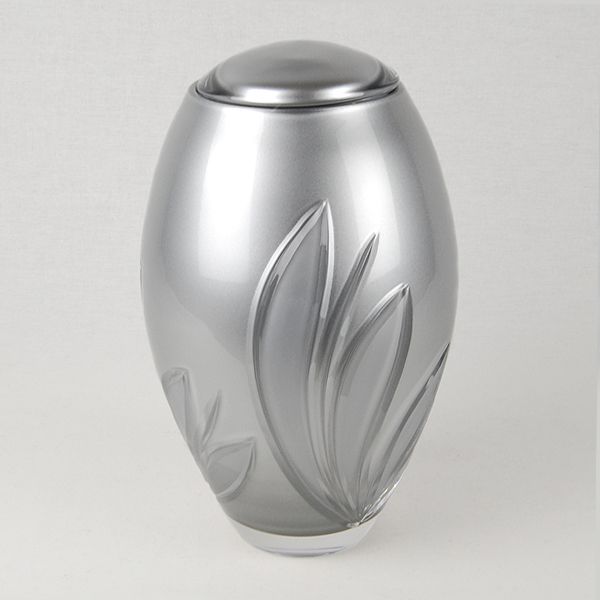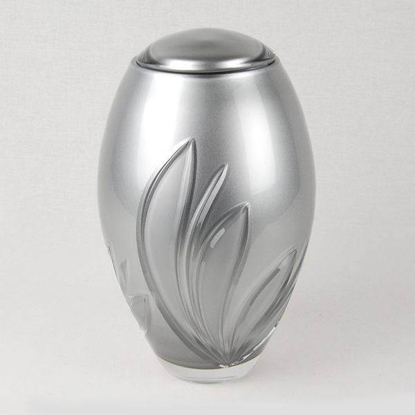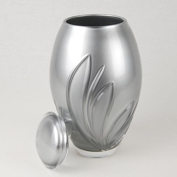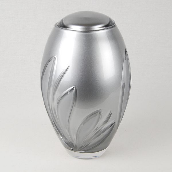 The Silver Crystal Bloom crystal cremation urn is crafted in the Czech Republic by Bohemian glass artisans from 24% full-lead crystal. The inner chamber is painted with a metallic silver finish, making the urn non-transparent.