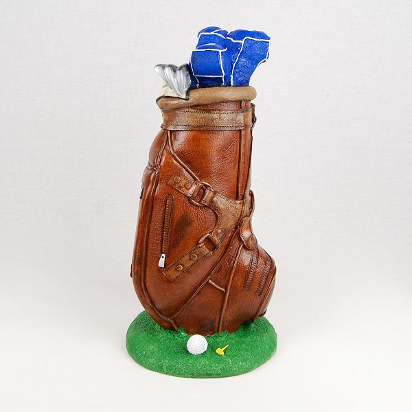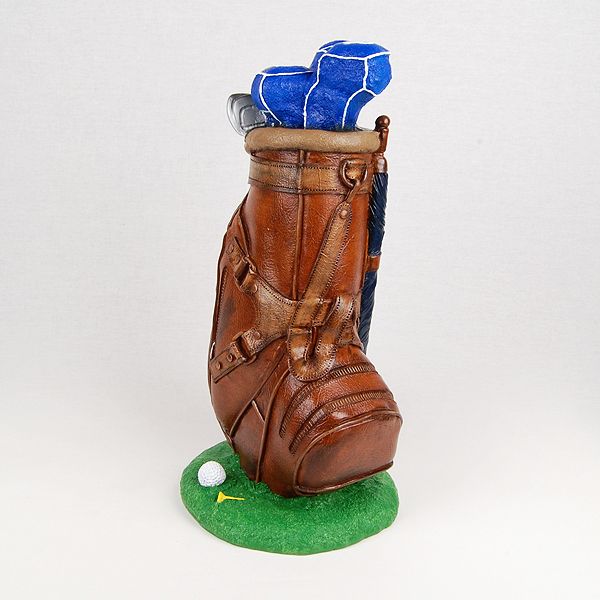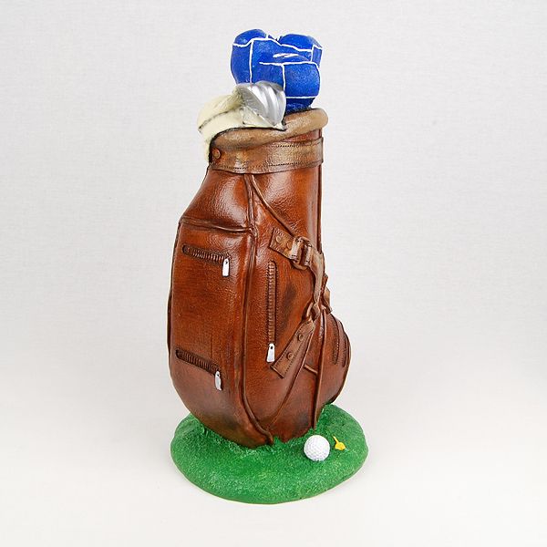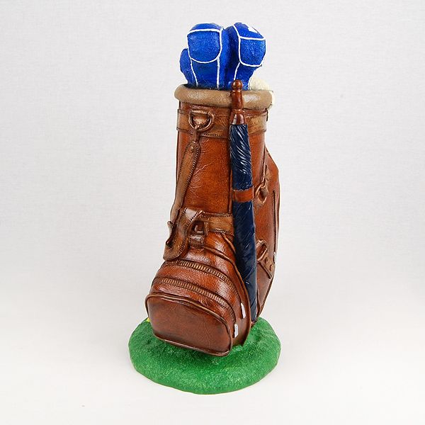The Masters Golf Bag is a simulated leather statuary cremation urn cast in the shape of golf club bag. It opens with a bottom-opening stopper.
