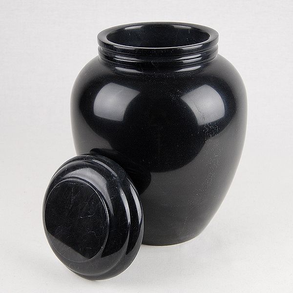 The Black Onyx Marble genuine stone cremation urn is crafted from natural-quarried marble in the shape of a classic style vase .