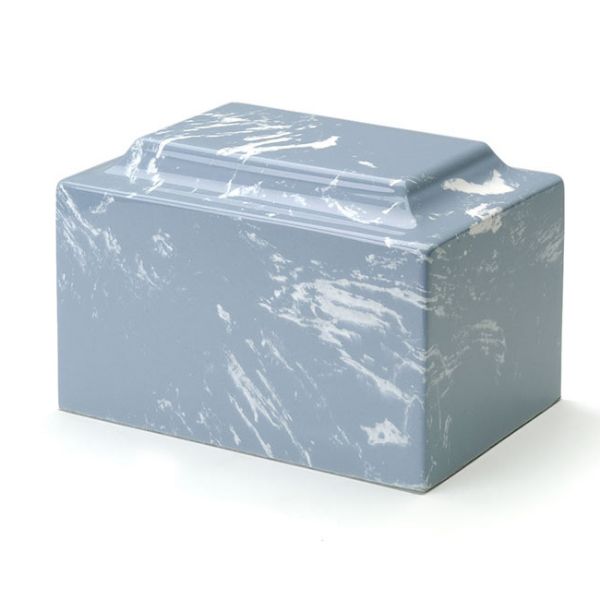 The Classic Wedgewood Keepsake cremation urn is crafted from cultured marble in the shape of a rectangular cube. The urn cavity is accessible from a bottom-opening stopper. Since each urn is unique, please allow for slight variations in the pattern, texture and intensity of the cultured marble.
