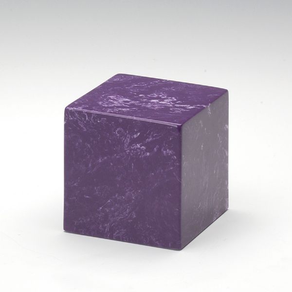 The Cube Amethyst keepsake cremation urn is crafted from cultured marble in the shape of a small cube. The urn cavity is accessible from a bottom-opening stopper. Since each urn is unique, please allow for slight variations in the pattern, texture and intensity of the cultured marble.