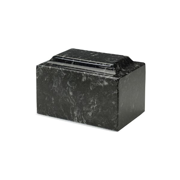 The Classic Ebony token cremation urn is crafted from cultured marble in the shape of a rectangular cube. The urn cavity is accessible from a bottom-opening stopper. Since each urn is unique, please allow for slight variations in the pattern, texture and intensity of the cultured marble.