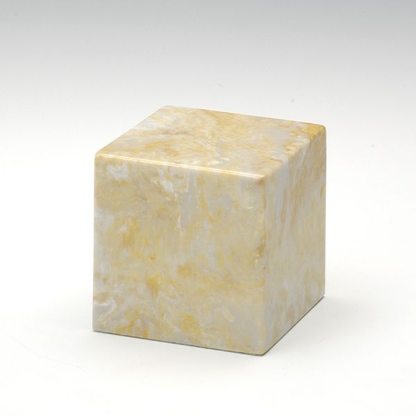 The Cube Gold keepsake cremation urn is crafted from cultured marble in the shape of a small cube. The urn cavity is accessible from a bottom-opening stopper. Since each urn is unique, please allow for slight variations in the pattern, texture and intensity of the cultured marble.