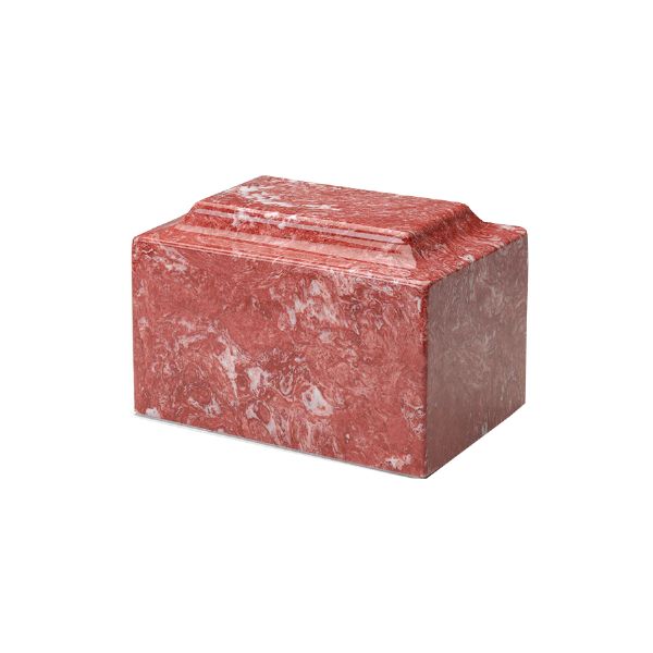 The Classic Rose token cremation urn is crafted from cultured marble in the shape of a rectangular cube. The urn cavity is accessible from a bottom-opening stopper. Since each urn is unique, please allow for slight variations in the pattern, texture and intensity of the cultured marble.