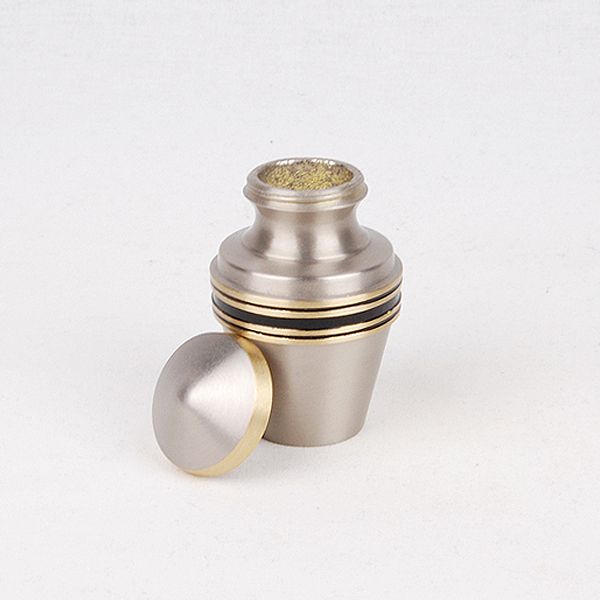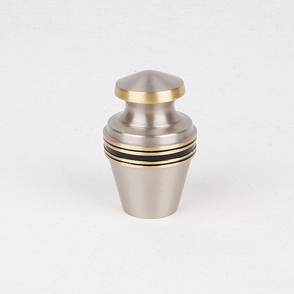 The Grecian Pewter brass token cremation urn is crafted in the shape of a classic style vase with a threaded, top-opening lid.