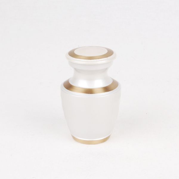 The Trinity Pearl brass token cremation urn is crafted in the shape of a classic style vase with a threaded, top-opening lid.