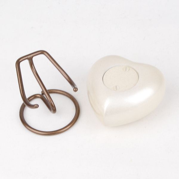 The Artisan Pearl brass token cremation urn is crafted in the shape of a heart and includes a metal display stand.