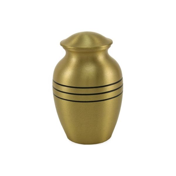 The Classic Bronze with Three Stripes keepsake brass cremation urn is crafted in the shape of a classic style vase with a top-opening lid.