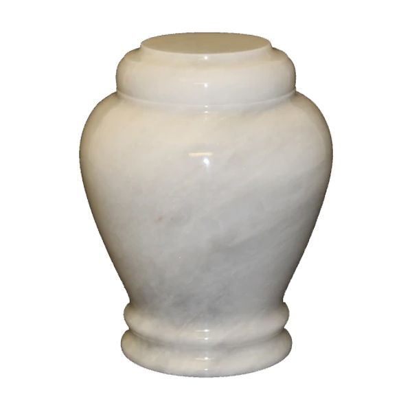 The Embrace Antique White genuine stone keepsake cremation urn is crafted from natural-quarried marble in the shape of a classic style vase. It has a top-opening lid that can be sealed closed using the included epoxy sealant.