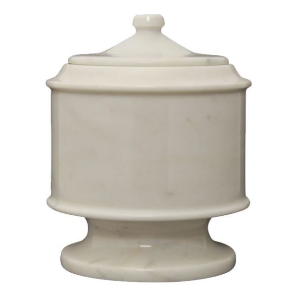 The Lasting Tribute Antique White genuine stone cremation urn is crafted from natural-quarried marble in the shape of a contemporary style vase. It has a top-opening lid that can be sealed closed using the included epoxy sealant.