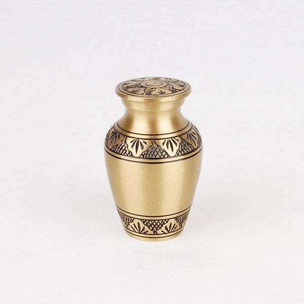 The Athena Bronze Elite brass token cremation urn is crafted in the shape of a classic style vase with a threaded, top-opening lid.