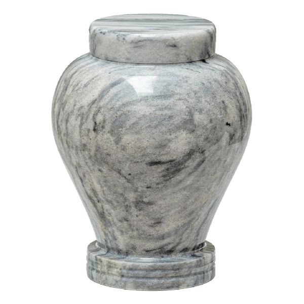 The Silver Cloud genuine stone cremation urn is crafted from natural-quarried marble in the shape of a classic style vase with a top-opening lid.