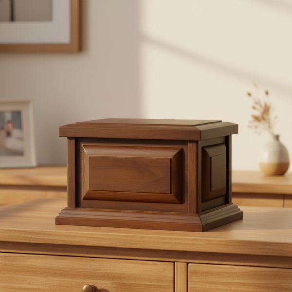 The Winston hardwood cremation urn is crafted from solid harwood in the shape of a traditional style rectangular cube.
