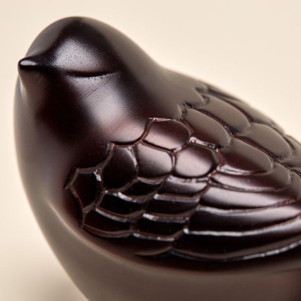 The Antique Bronze Songbird is a statuary token cremation urn crafted from brass in the sculpture of a small bird with a bottom, threaded closure.