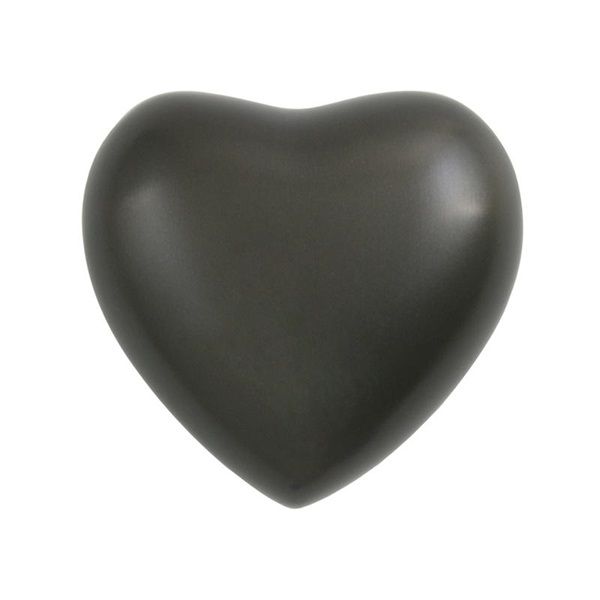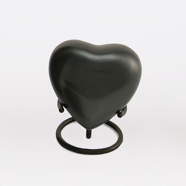 The Classic Slate brass token cremation urn is crafted in the shape of a heart and includes a metal display stand.