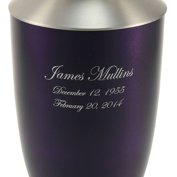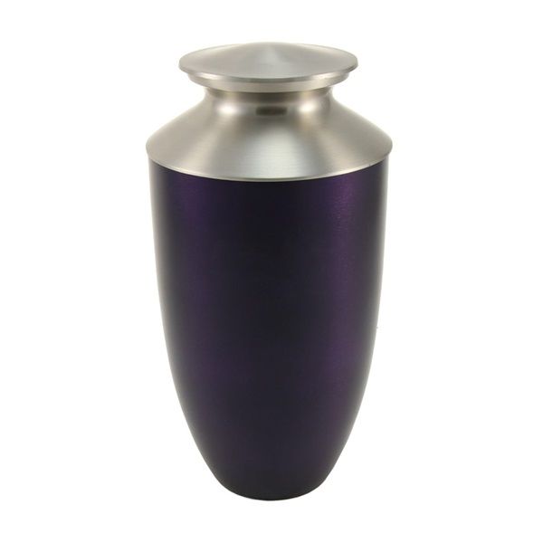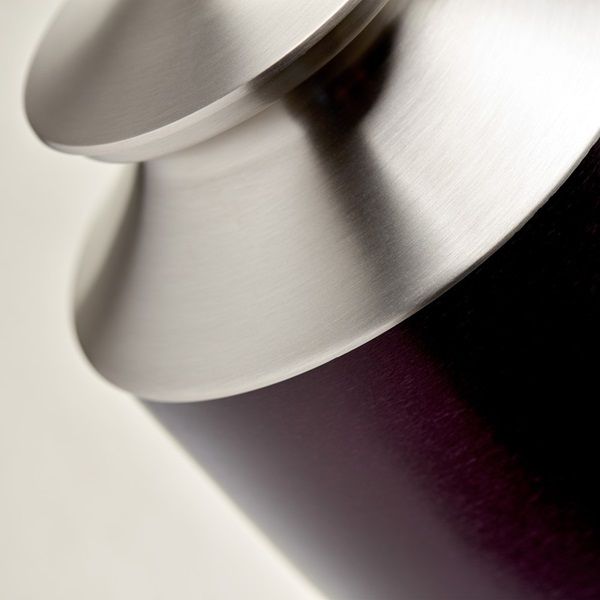 The Monterey Purple brass cremation urn is crafted in the shape of a contemporary style vase with a threaded, top-opening lid.