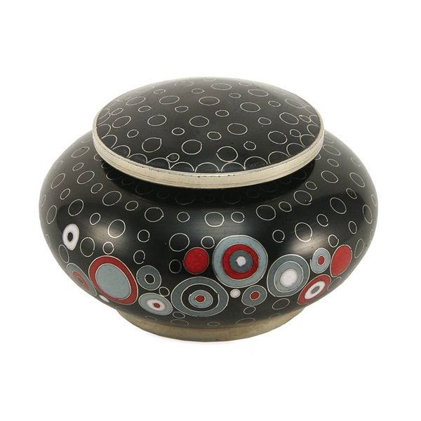 The Opulence Onyx Cloisonné token cremation urn is crafted in the shape of a classic style vase with a threaded, top-opening lid.