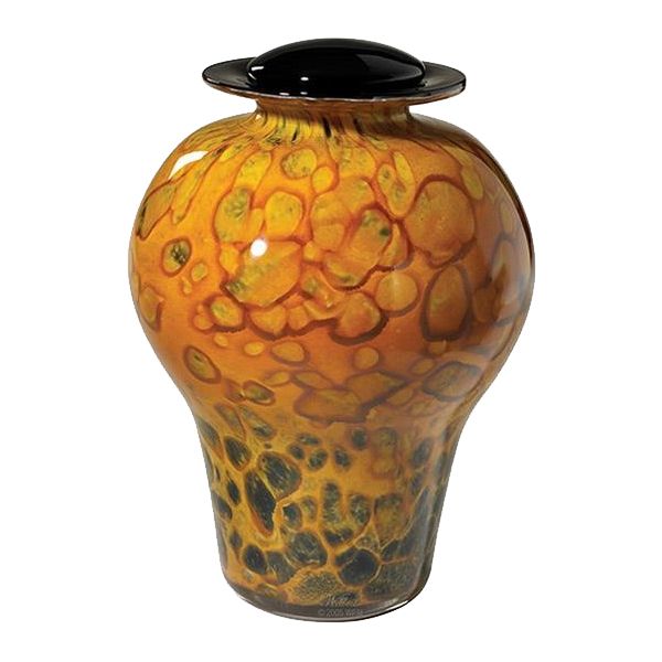 Glass cremation urns are made from an ancient process that modern glass artisans still use today. Working with molten glass using a variety methods, these artists are able to produce urns with some of the most brilliant and colorful details available. After the glass hardens and cools, the end result is an extremely beautiful piece of artwork.