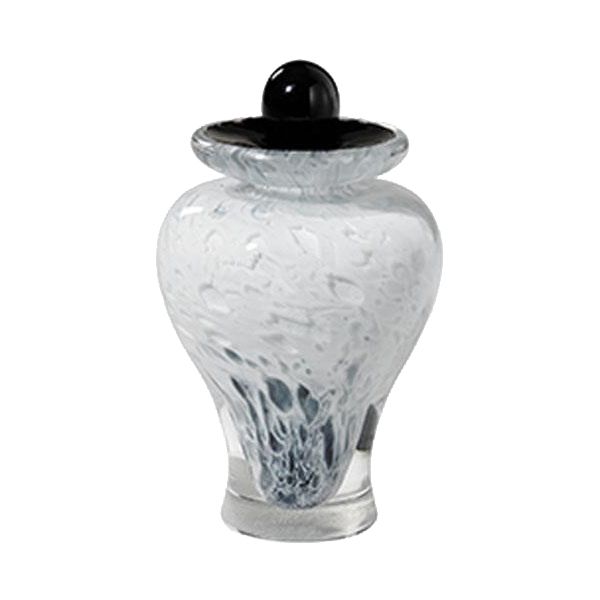The Karine Bouchard Winter glass keepsake urn is a blue/white hand-blown glass urn in the shape of a contemporary style vase. It captures light and conveys peace, freshness, and the renewal of life. Due to variations in the glass-blowing process, every piece is slightly different and colors may vary.