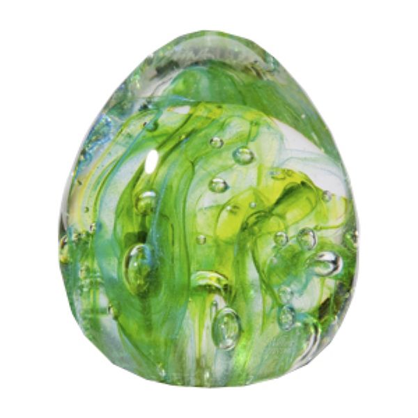 The Karine Bouchard Spring glass token urn is a green hand-blown glass urn in the shape of a water drop. It captures light and conveys peace, freshness, and the renewal of life. Due to variations in the glass-blowing process, every piece is slightly different and colors may vary.