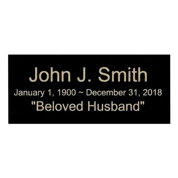 The Brass on Black engravable nameplate is a simple 3.5" x 1.5" brass cremation urn nameplate. This nameplate is not appropriate for round urns and cannot conform to curved surfaces.