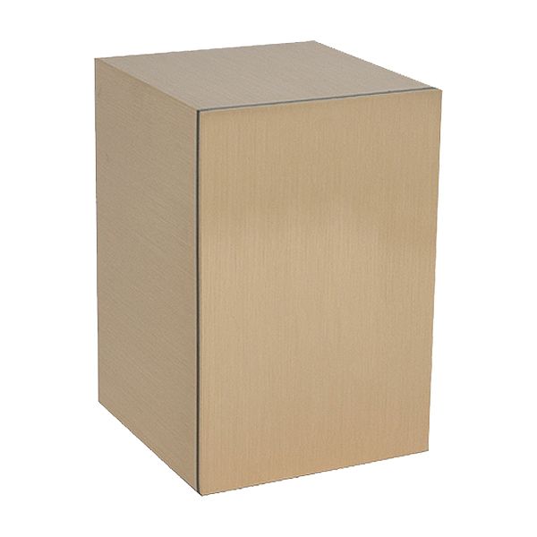 The Solitude Plain cremation urn is a rectangular wrought bronze cube. It features a Latin Crucifix appliqué.